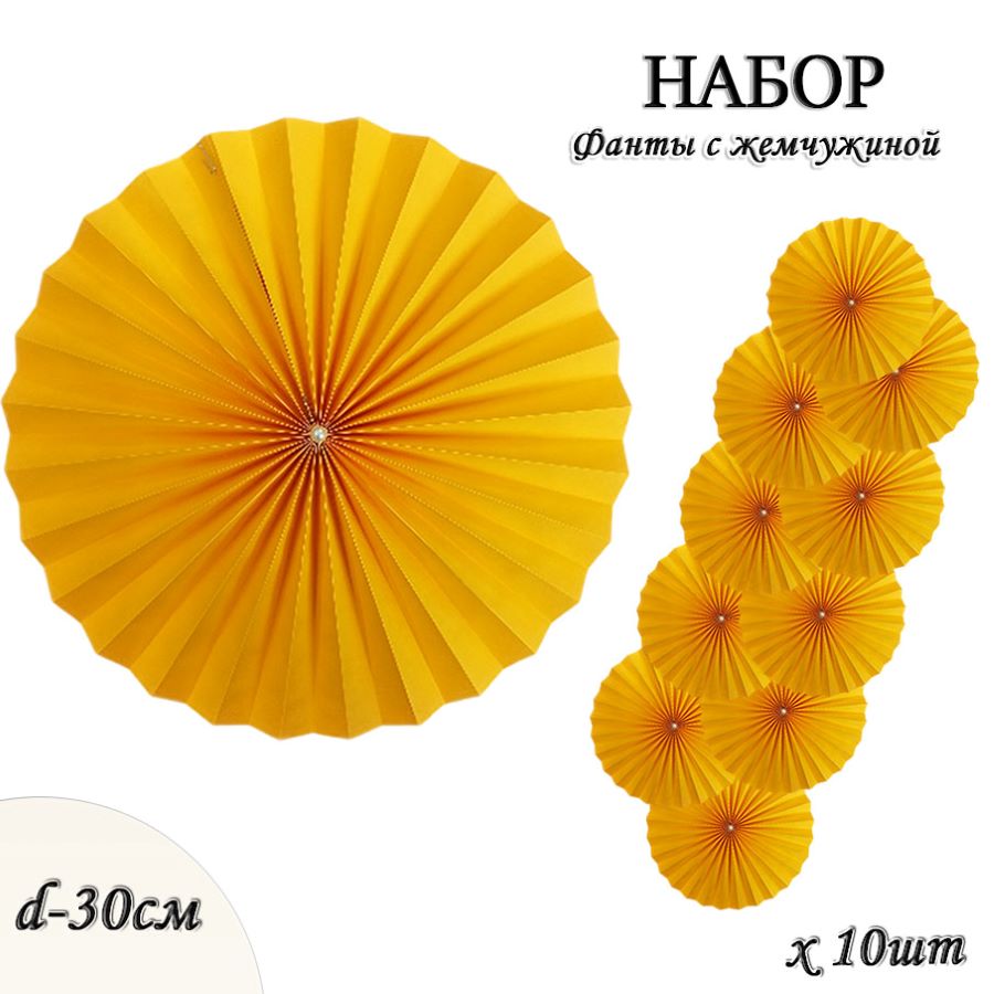 Фанты с жемчужиной НАБОР 10шт х 30см, ярко-желтый