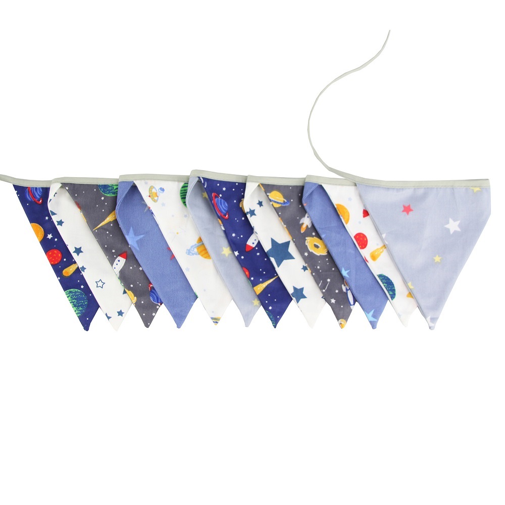 Гирлянда состоит из 12 флажков. Расстояние между флажками - 6 см, общая длина составляет 4 м.