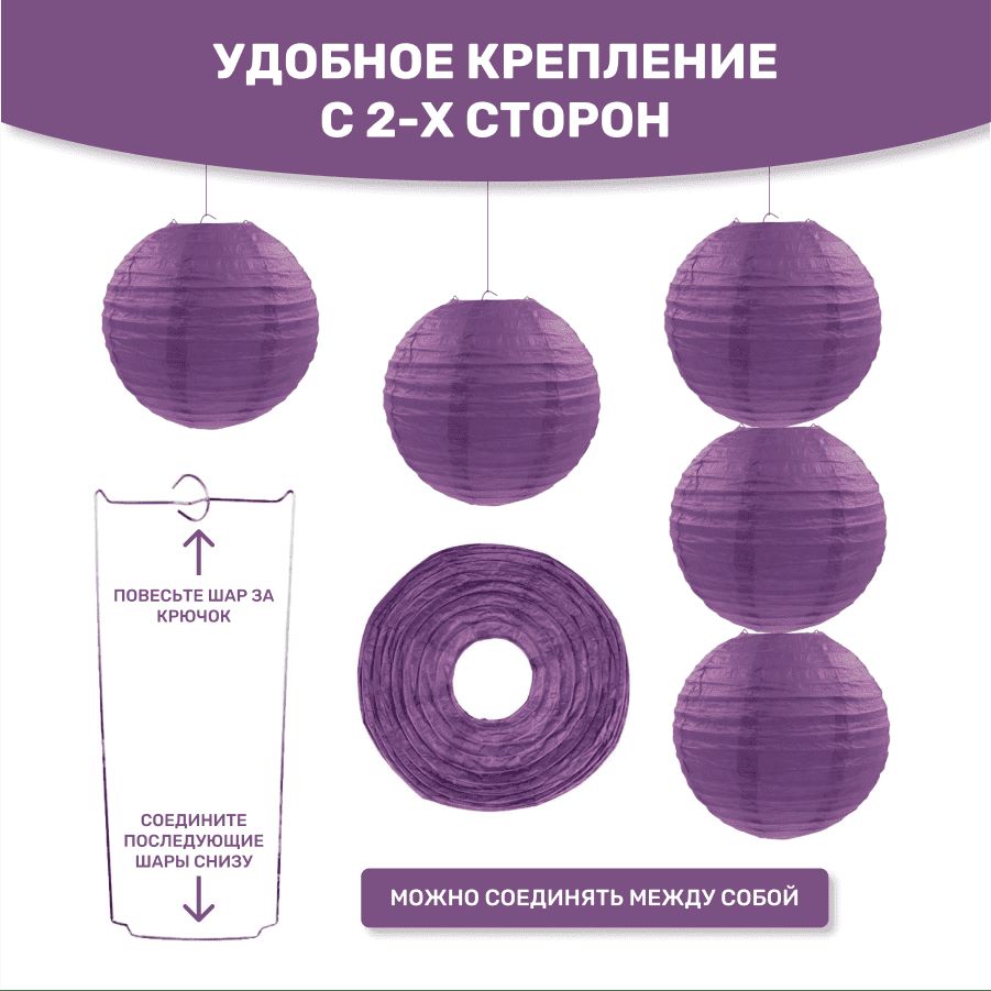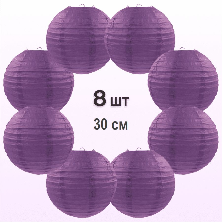 Комплект подвесные фонарики 30 см х 8 шт, фиолетовый