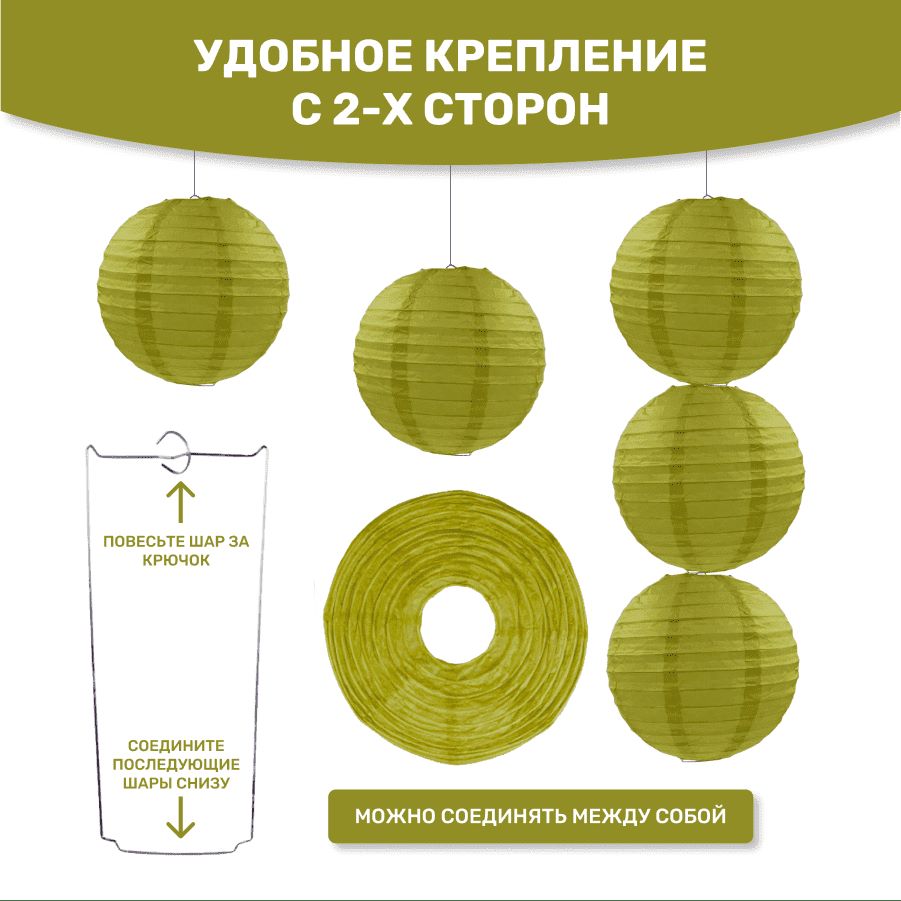 В комплект входит 8 бумажных фонариков и лента атласная.