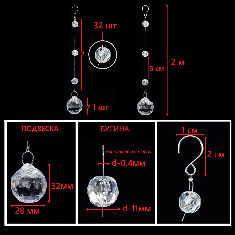 Набор струн с акриловыми бусинами №1, 10шт х 2м