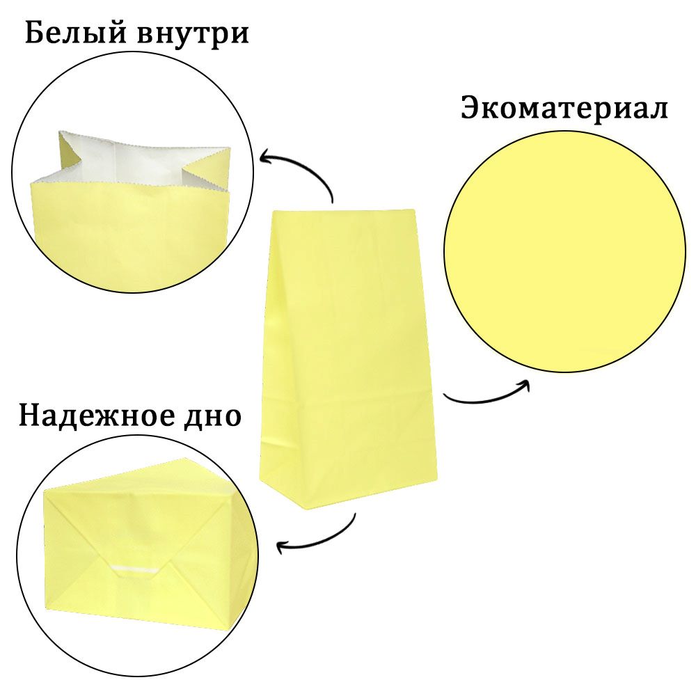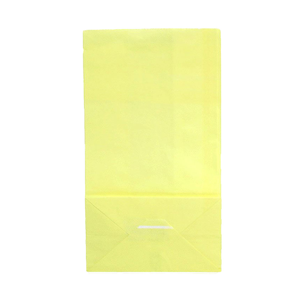 Подарочный пакет из крафтовой бумаги пастельного оттенка с белыми бумажными ручками и белой внутренней стороной.