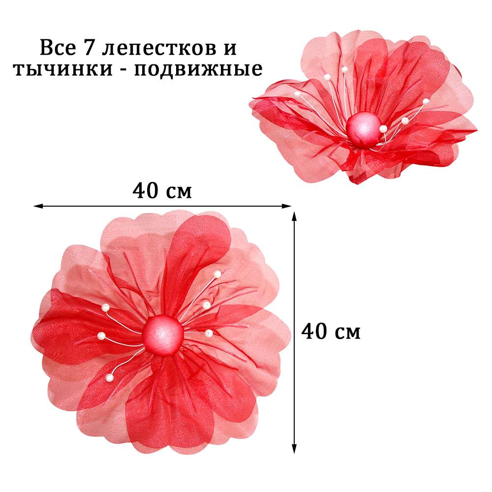 Цветок из органзы, красный