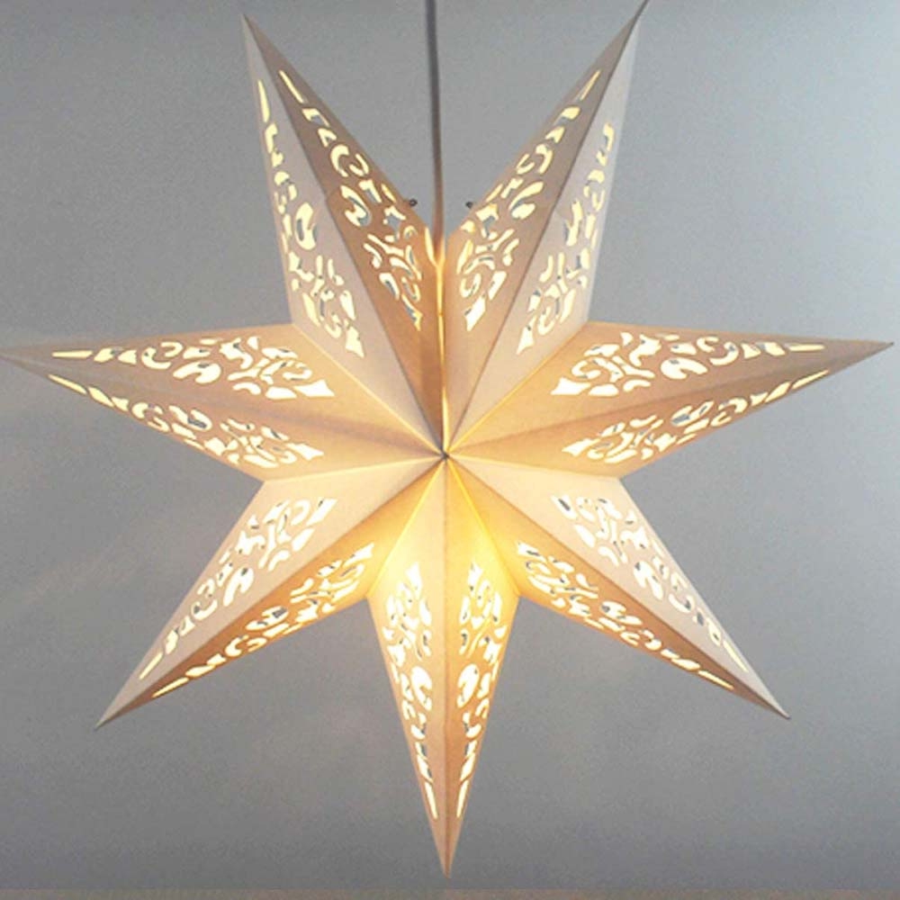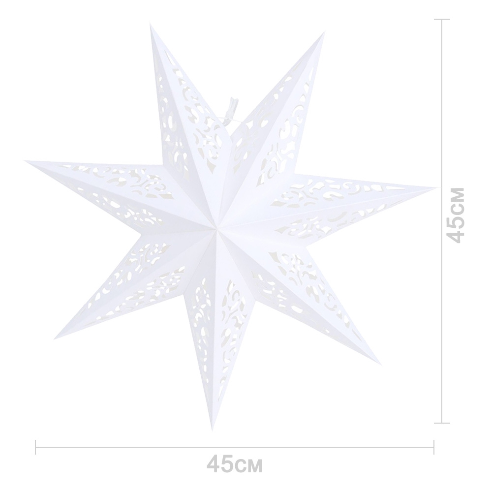 Семиконечная объемная звезда 45 см — великолепный декор из тонкого перфорированного картона. Создает красивые световые эффекты. Поставляется в сложенном виде, в комплекте шнур для фиксации объема и подвеса.