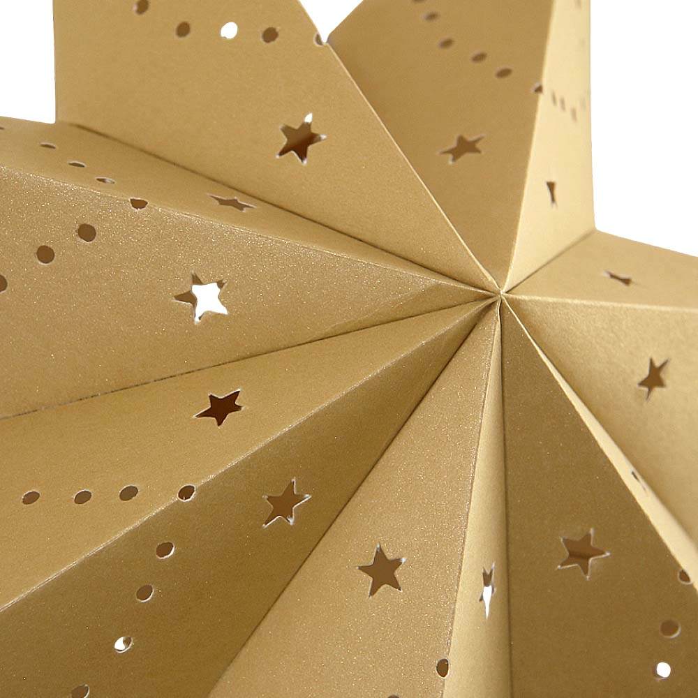 Аккуратно расправьте лучи, чтобы придать звезде идеальную объемную форму, затем зафиксируйте встроенным шнуром для подвеса.